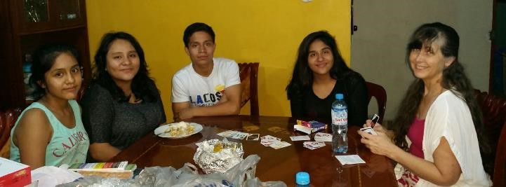 We enjoyed some fellowship with Abigail’s sisters and a teen from the school along with Sue Brannan of Missionary Ventures, far right, playing card game Phase 10 and eating plantain chips. Jim and Sue Brannan operate the Christian Learning Center in Puerto Maldonado, Peru. Sue stopped in Lima for a visit while we were at Yo Soy Jesus. Abigail, who trained with us in the classical Christian method in December and January in the U.S., is second from the left.